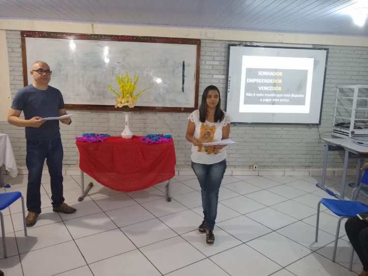 Palestra “Um Líder em Mim”, sendo esta ministrada pela Profª Vanessa Maria de Carvalho Nazário Oliveira, sendo a referida palestrante Pedagoga, licenciada em Geografia, e especializada em Administração Educacional, a mesma ocorrida ao longo da noite do dia 09/10/2019.