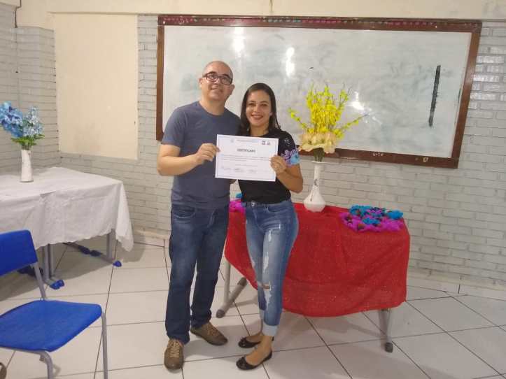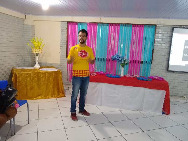 “Criatividade e Marketing”, ministrada pelos professores Idalete Amorim e Fábio Cardoso, contando com o apoio do também docente Arthur Fraga, ocorrida esta ao longo da noite do dia 15/08/2019.