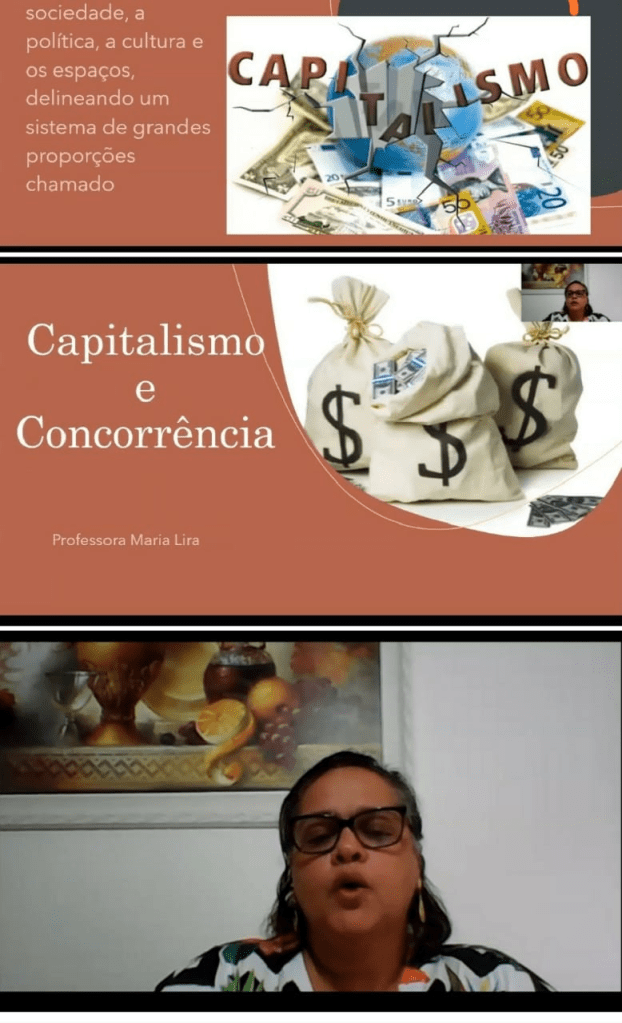 Segue abaixo imagens da vídeo aula sobre “Capitalismo e Concorrência” ministrada pela Professora José Maria Lira, sendo esta apresentada no dia 25 de setembro, ao qual os participantes responderam a uma atividade interativa sobre o tema abordado.