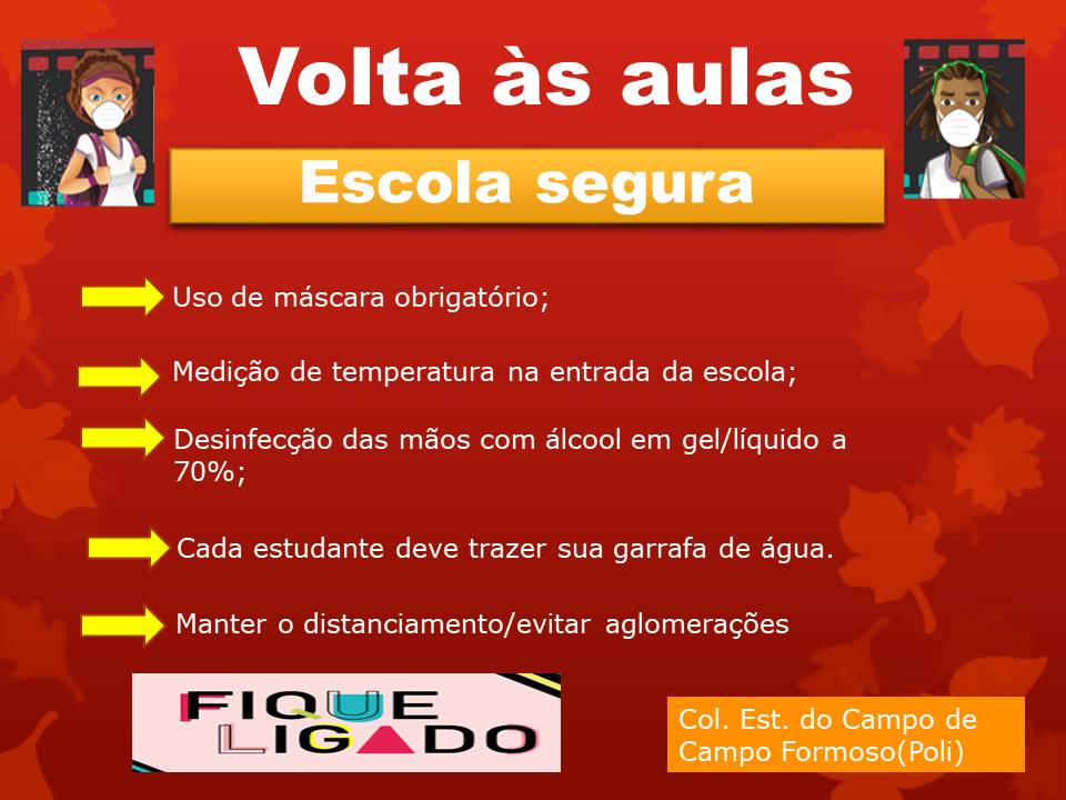 Educandos devem seguir todos os protocolos de biossegurança com o retorno das aulas semipresenciais na Modalidade de Ensino Híbrido como disposto na imagem acima: