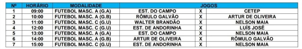 Segue abaixo Tabela de Competições da Etapa TerritoriaL do JEB de Senhor do Bonfim.