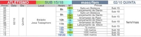 Vejam Abaixo Tabela dos XXIV Jogos Escolares do Município de Campo Formoso- BA, no Ano Letivo de 2025: